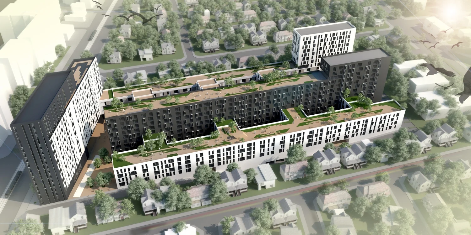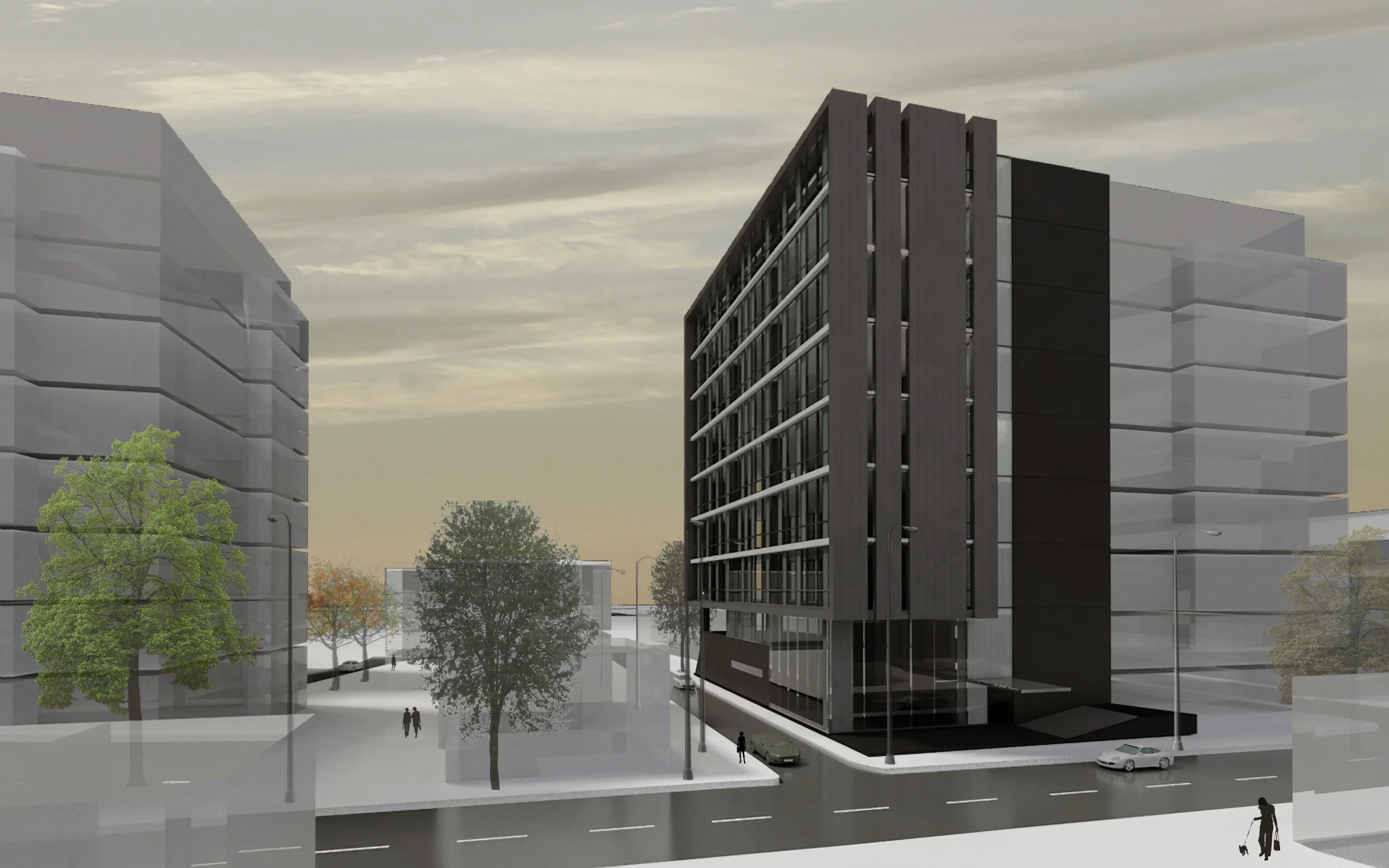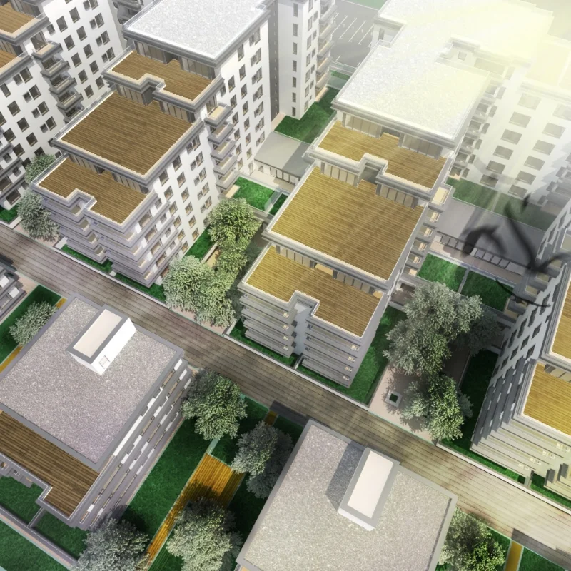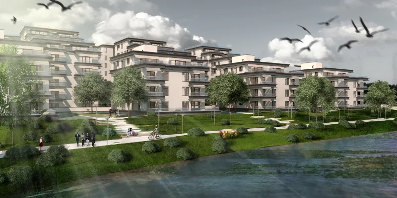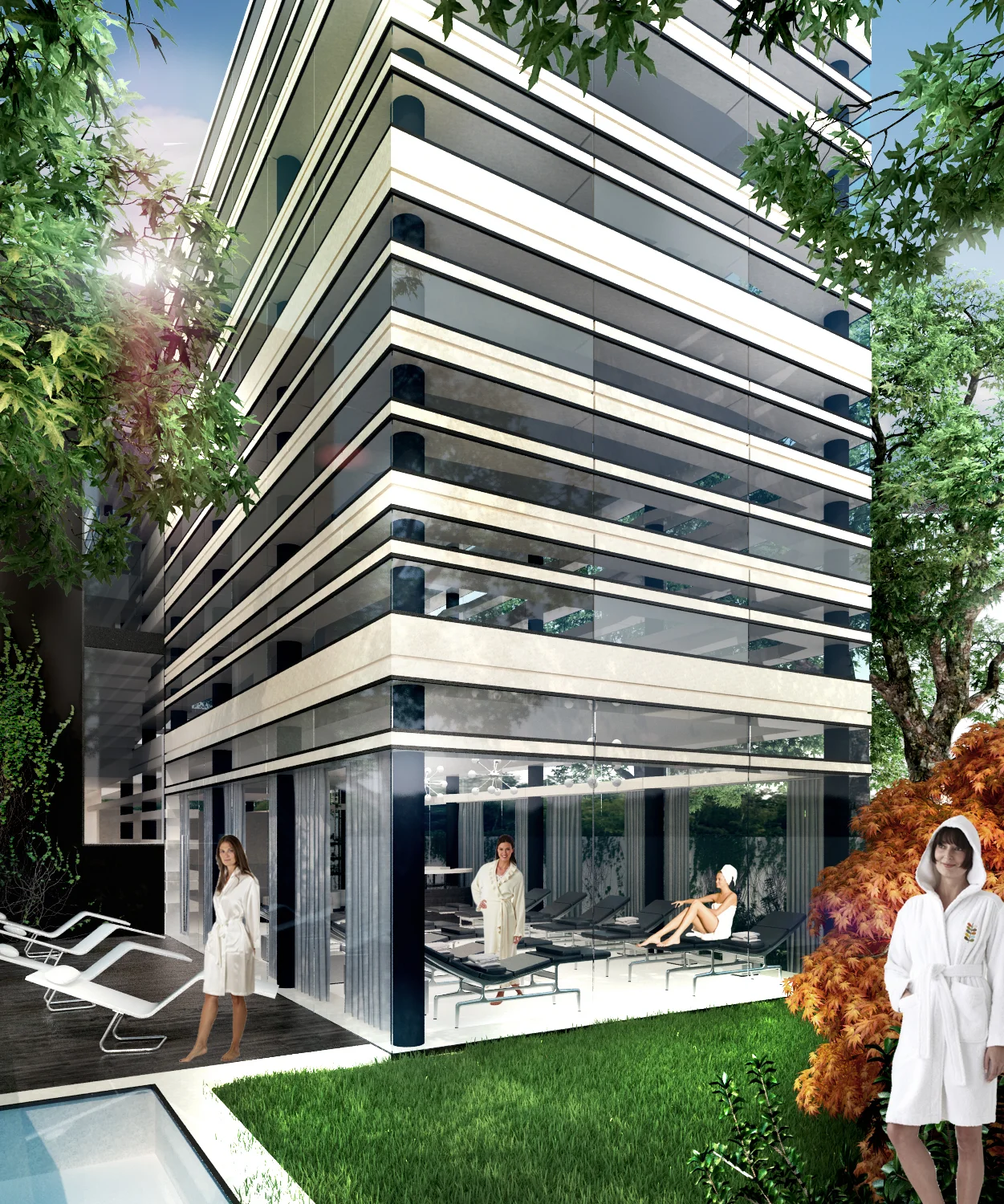 The first challenge of the project was to use a typology used by the modernist architecture (largely implemented during the communist years in Romania) and to reinvent it. Therefore we adopted the slab - the abstract prism - as the main volume to be used in the new development. What used to be a simple abstract box with small openings became a multilayered facade with large windows and loggias. Different materials describe distinct patterns on the facade generating diversity, reintroducing the concept of ornament as abstract composition of vertical and horizontal surfaces.