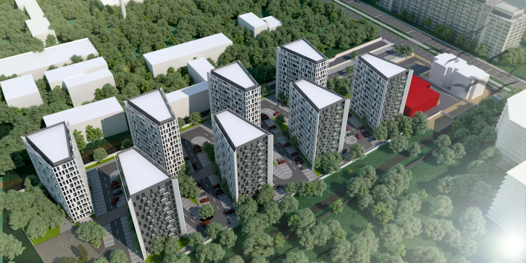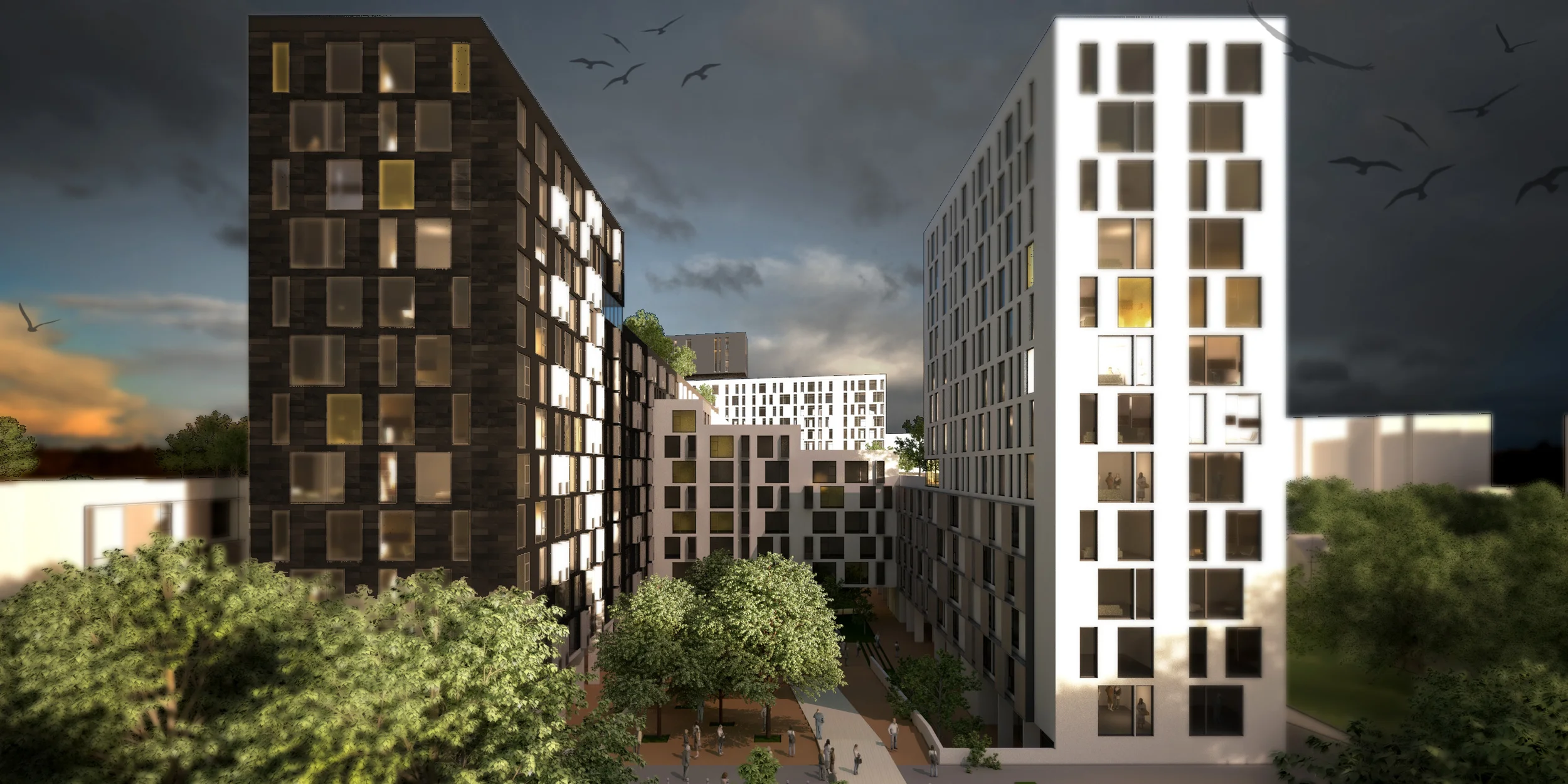 As the development is composed by 4 blocks at different angles we tried to specialise and diversify each one in direct relation to their position within the composition.