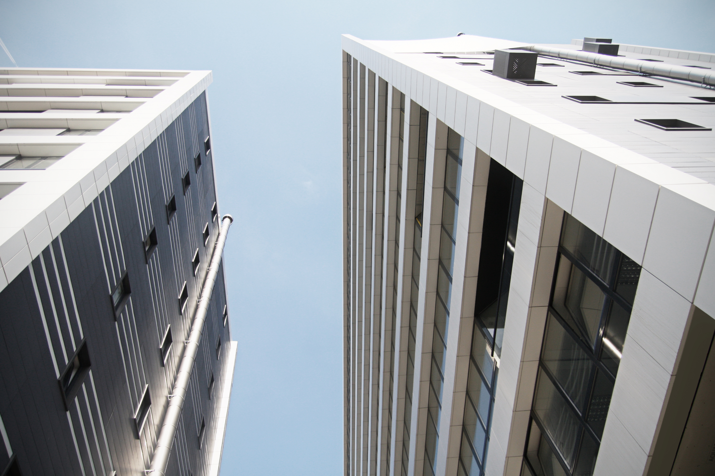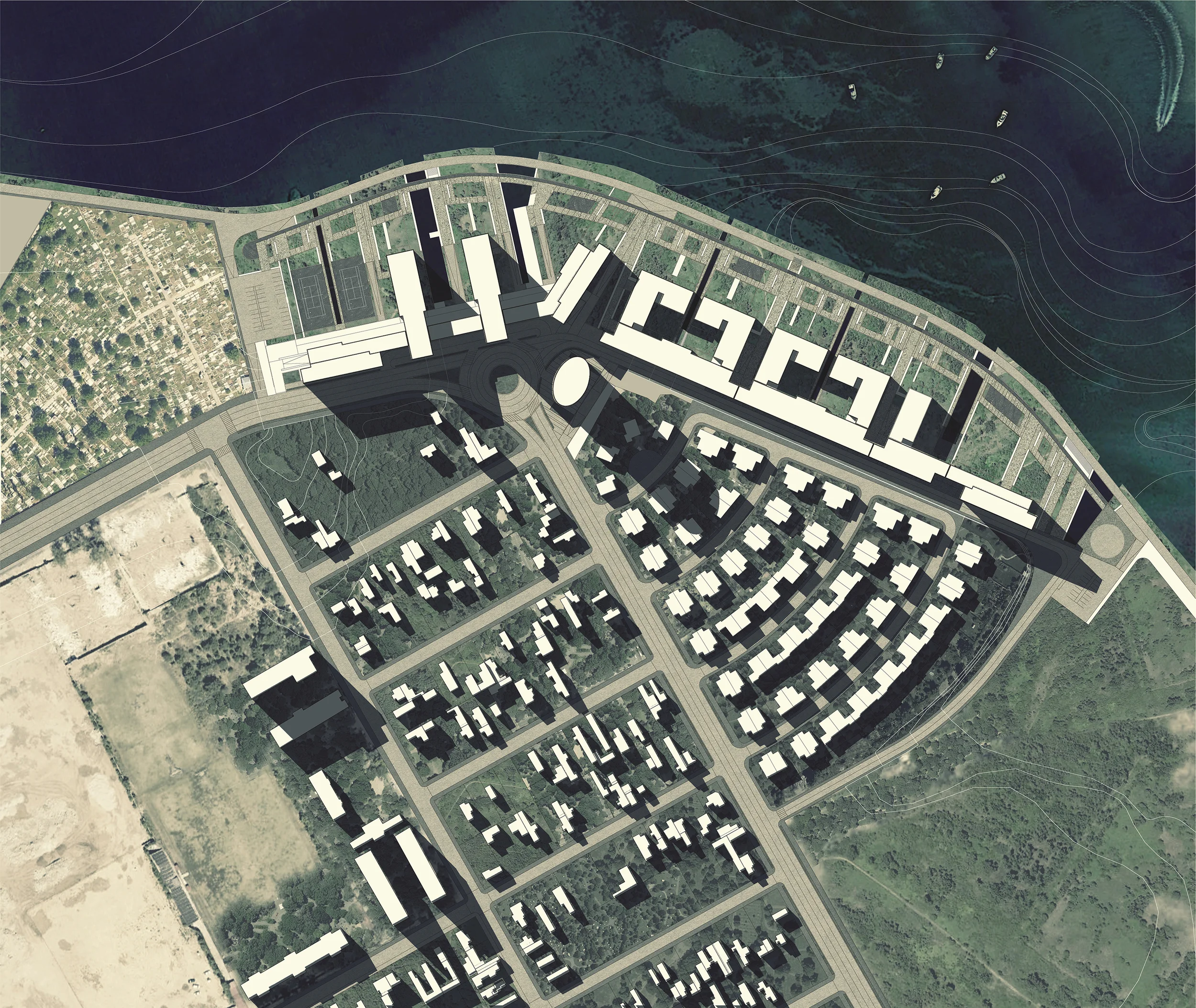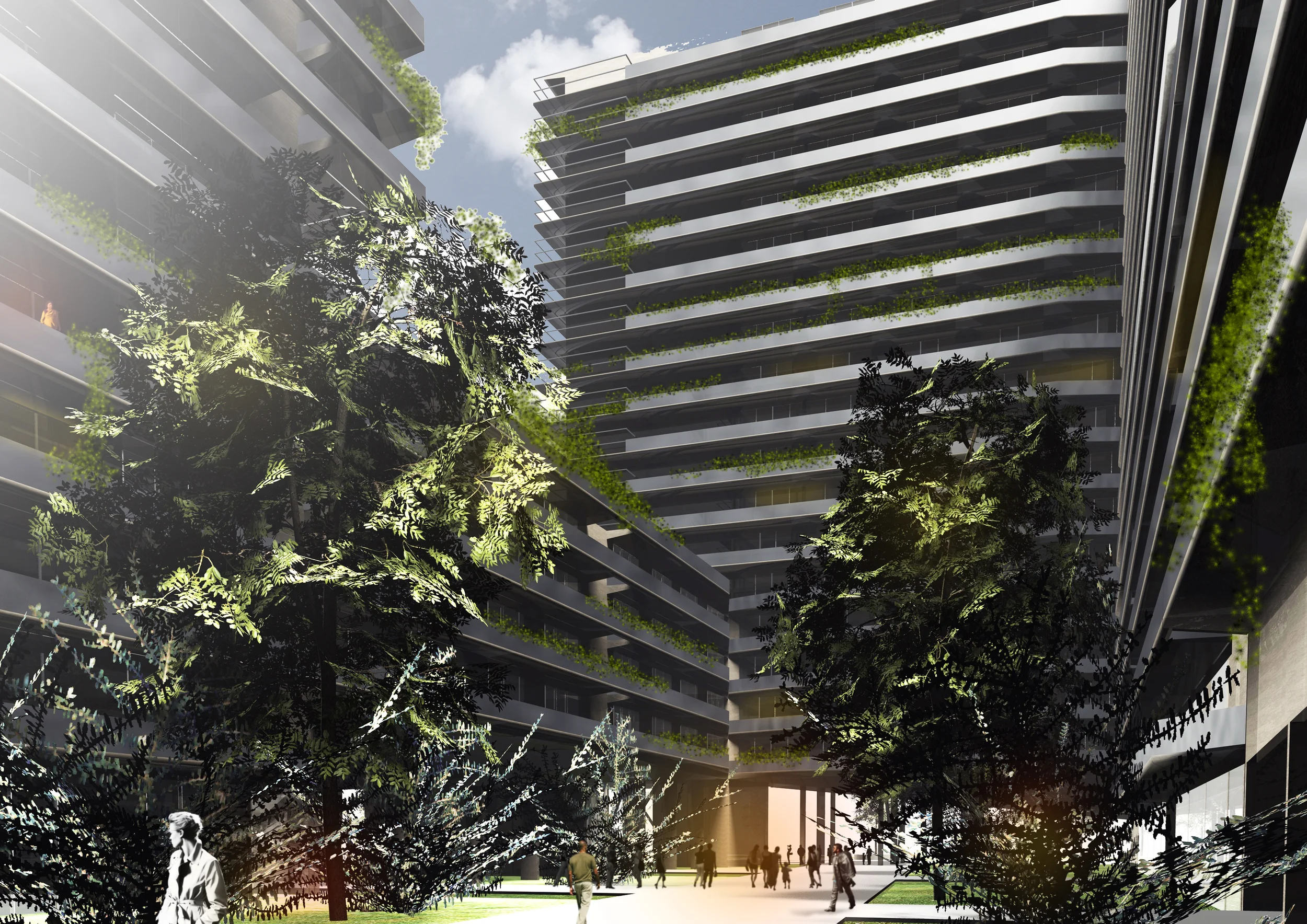 Each block is composed as a closed frame - the office buildings - or an open frame - the residential buildings.
