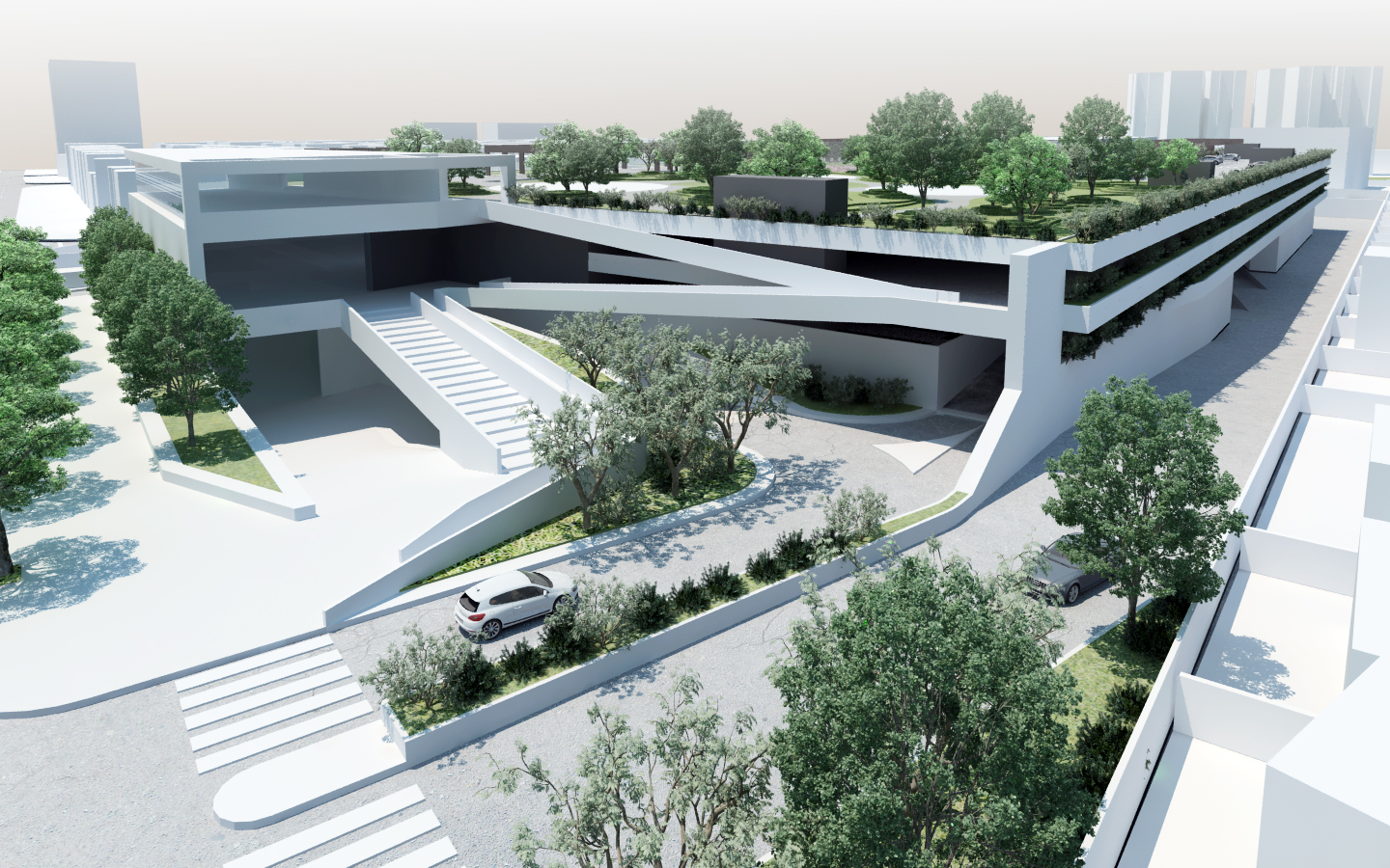 Block 4 acts like a gate for the whole development, containing administration and other small offices for the maintenance personnel. Underneath this block is the access to the courtyard and the acces to the underground.