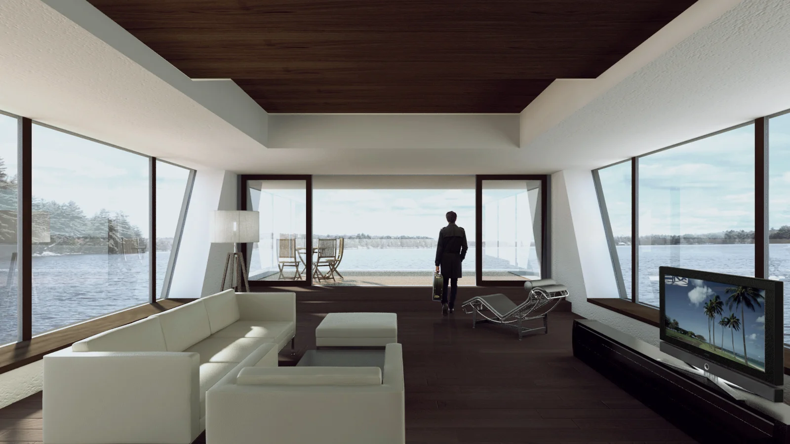 The two residential blocks are impure prisms since their upper floors recede in order to generate large terraces with spectacular views. The volume seams to be eroded from on end, where corner windows link compositionally one of the short facades to the two main facades.