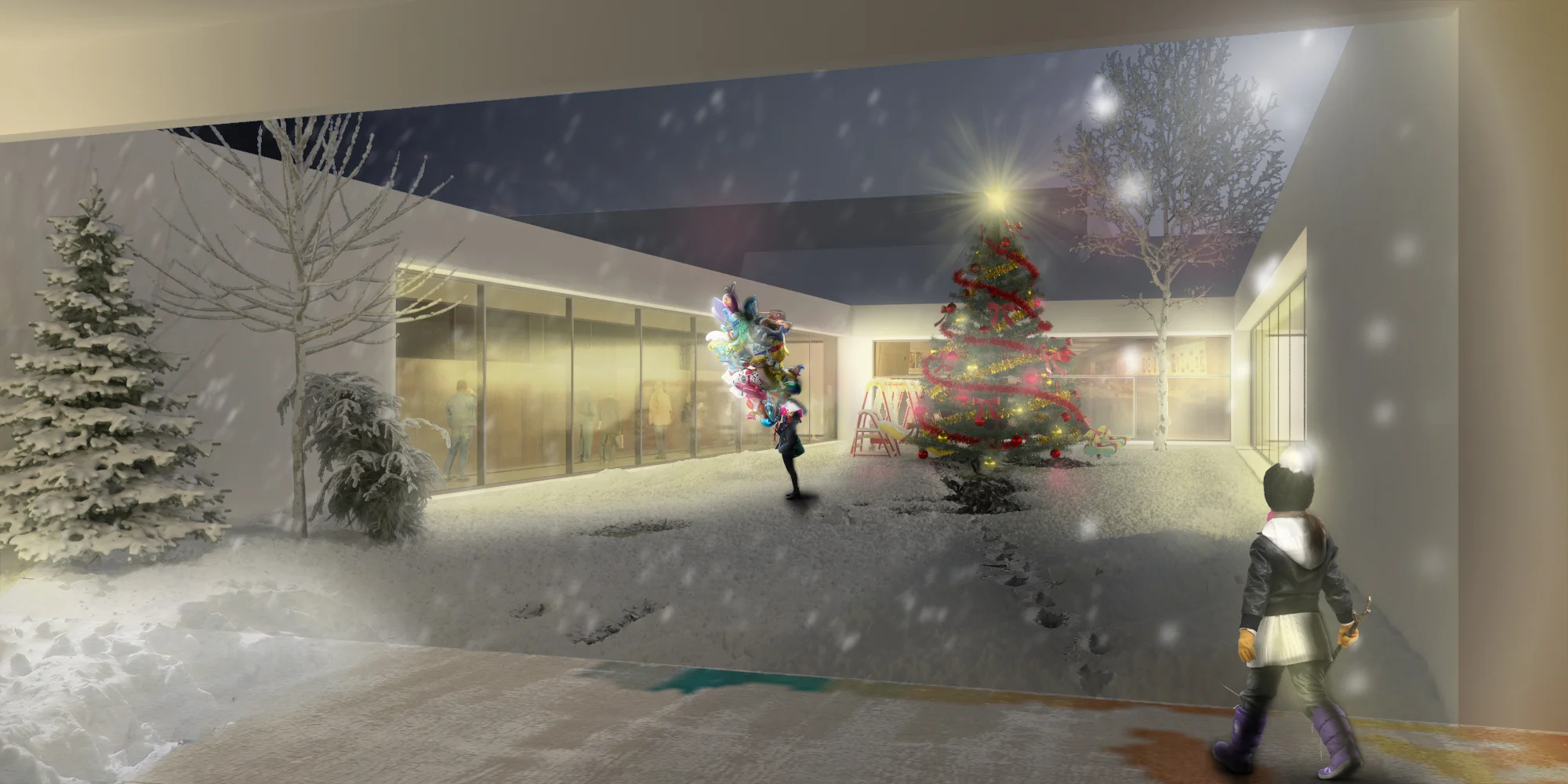 In order to liberate the long facades from structural loads a 2,5 meter cantilever was realised, allowing the possibility of continuous glazing or corner windows which dematerialise the volume.